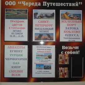 Для тех, кто мечтает открыть новые горизонты, туристическое агентство «Череда Путешествий» предлагает множество вариантов: от эксклюзивных экскурсионных туров по городам Беларуси, Украины, России и Европы, ярких рождественских туров и горнолыжных маршрутов до отдыха для детей и взрослых на лучших морских побережьяхИталия, Болгария, Польша, Крым, Одесса, Сочи, Анапа и др.).